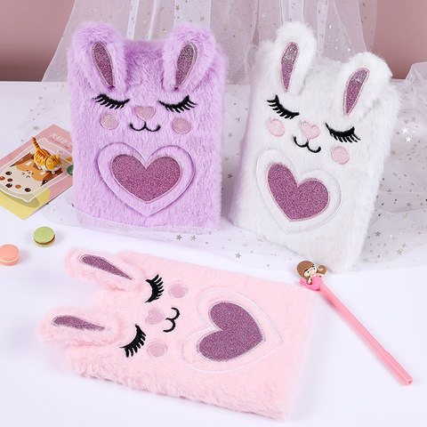 Nette Kinder Cartoon Bunny Plüsch Fluffy Secret Notebook Mädchen Student tragbare Mini-Tasche kleines Tagebuch Buch