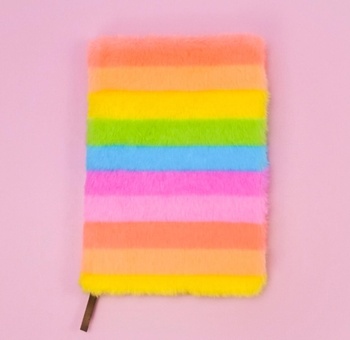 Cute Animal Rainbow Color Plush Secret Diary with or Without Lock and Pen Fuzzy School Notebook Journal for Girls